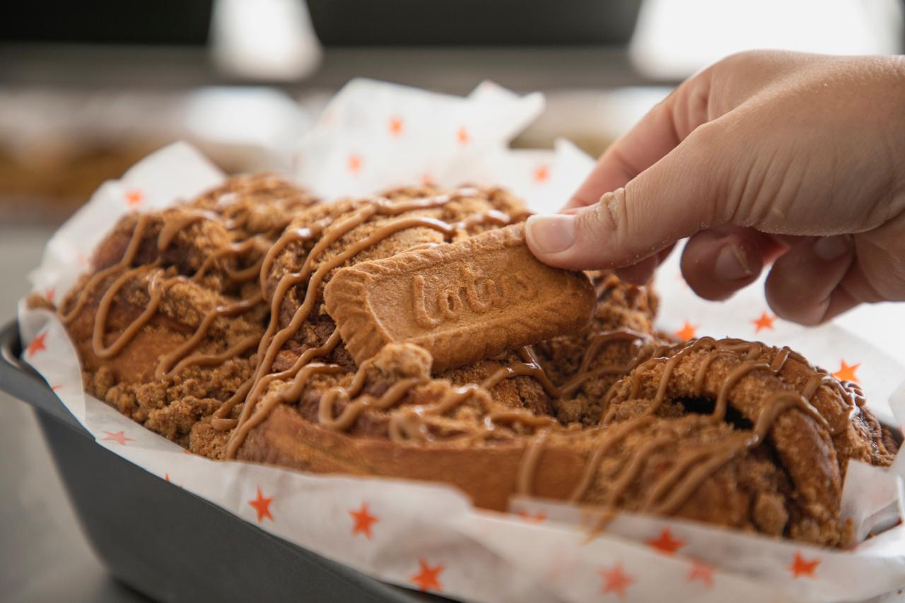Babka de Lotus recién elaborada por Omma Bakery. Este delicioso pan trenzado combina capas de masa esponjosa con un relleno generoso de crema de Lotus, creando una textura irresistible en cada bocado. Certificado Kosher, perfecto para disfrutar en cualquier momento del día. Elaborado con ingredientes de calidad para garantizar frescura y sabor auténtico.